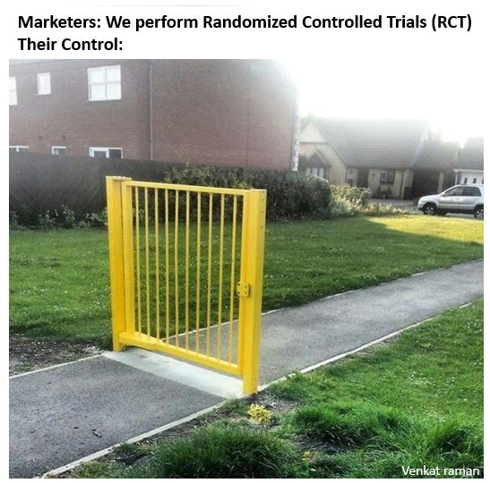 The reason why marketing experiments can’t be called RCT is because in marketing we can’t ‘control’ for a lot of factors.